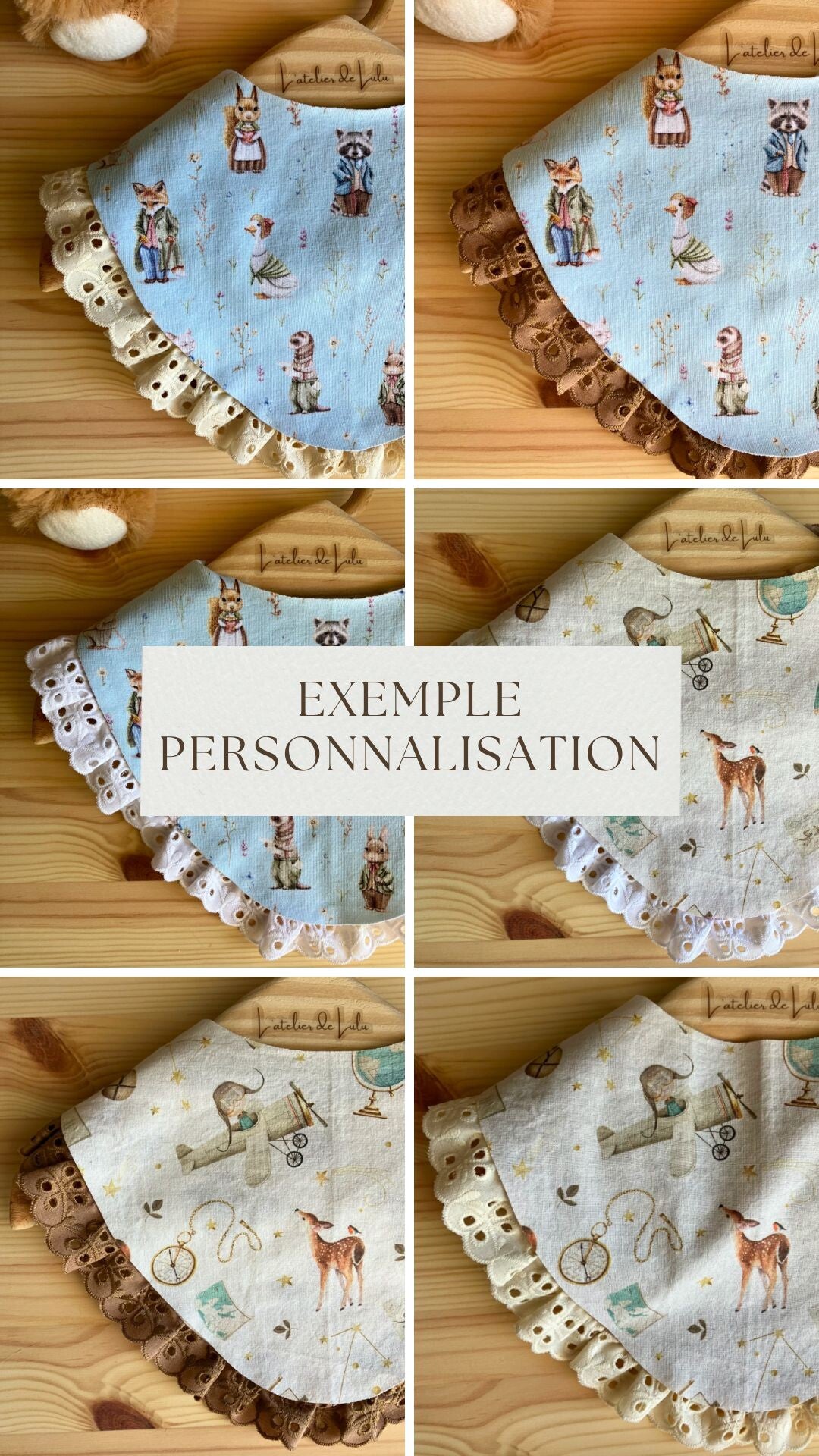 Si tu veux être tranquille, je te conseille de choisir le pack de 3 - en bas de la sélection et je te laisse m’indiquer juste ici les 3 bavouillettes qu’il te faut (attention hors personnalisation/ broderies)